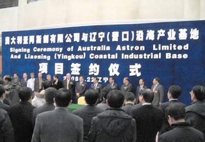 澳大利亚阿斯创有限公司代表,辽宁省代省长陈政高、副省长李万才,辽宁省及营口市有关领导,辽宁(营口)沿海产业基地管委会有关人员出席。